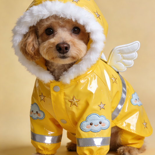 Angel Wings Fleece-Lined Dog Raincoat - Yellow Waterproof Jumpsuit with Reflective Tape for Small/Medium Dogs