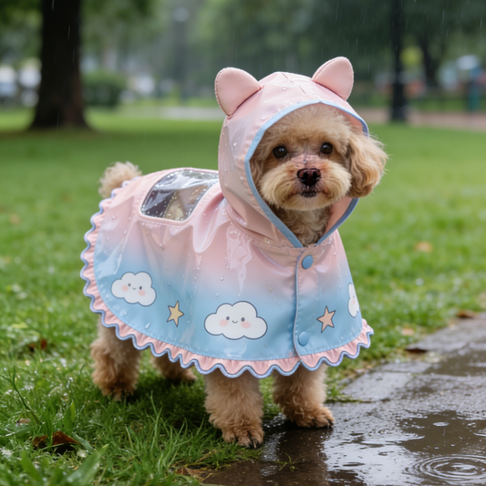Gradient Cloud Star Dog Rain Poncho - Pink & Blue Hooded Waterproof Cape for Small Dogs