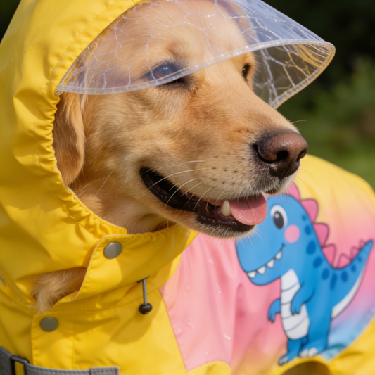 Cartoon Dinosaur Full Body Dog Raincoat - Yellow Pink Waterproof Jumpsuit for Medium Large Dogs