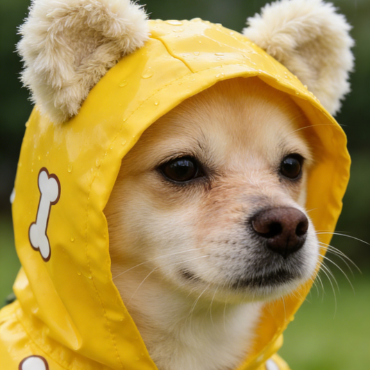Classic Bone Print Dog Rain Poncho - Yellow Waterproof Hooded Cape with Furry Ears for Small/Medium Dogs