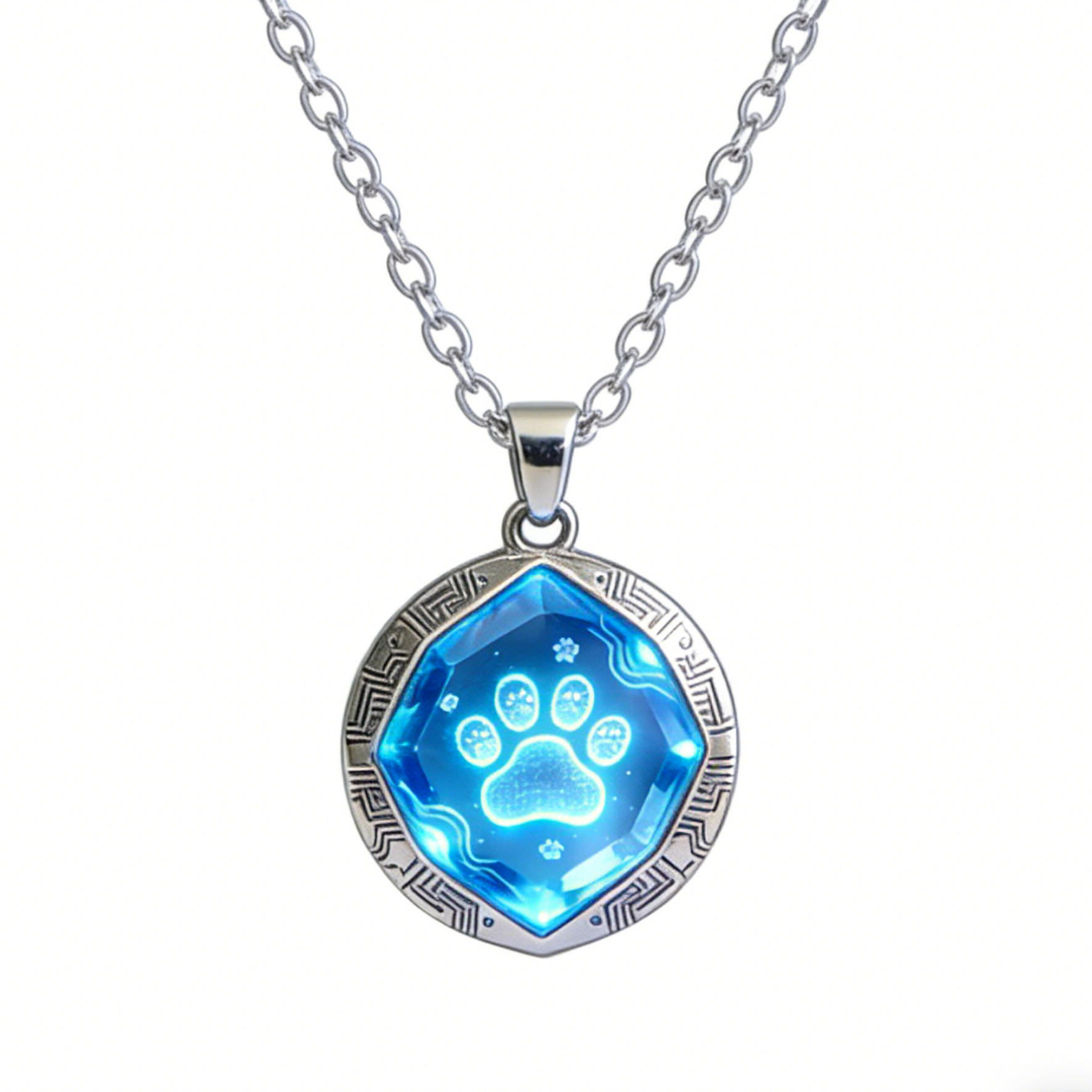 - Luminous Paw Print Core: The centerpiece is a faceted, crystal-like pendant that emits a soft, ethereal blue glow, featuring a glowing paw print at its heart—symbolizing the unique bond between you and your cat.